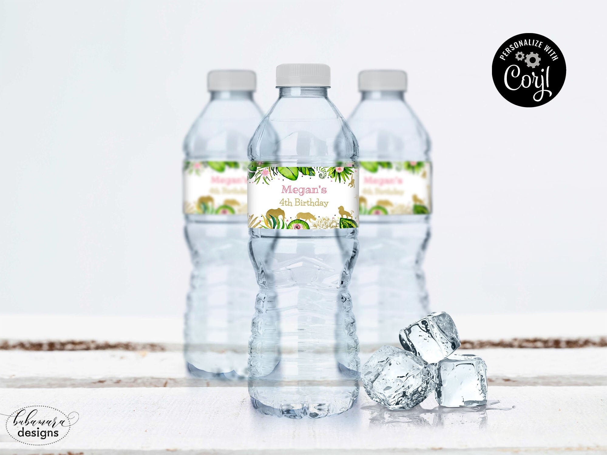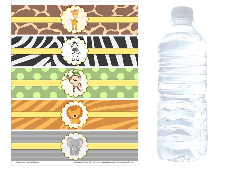 Jungle Water Bottle Label Template, Safari Party Animals Baby Shower ... 8.5"x2" water bottle label editable template The label fits standard sized bottled water ★★ HOW IT WORKS ★★ 1. After purchasing, you will receive an email shortly from 'Corjl' to the email associated with your Etsy account. The message will include a link. After creating a Corjl account, you'll be able to access your purchased item.