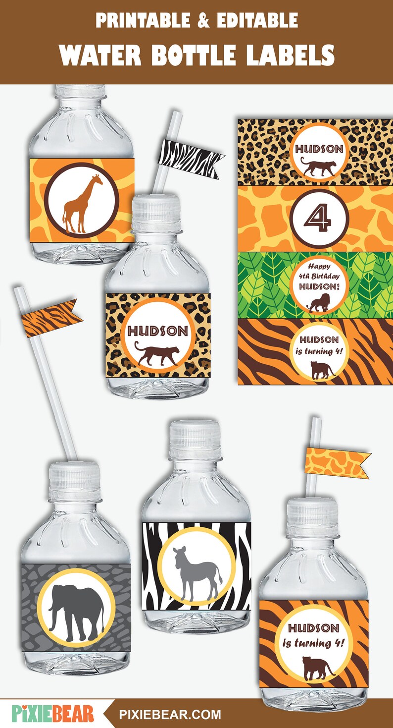 Blue Safari Water Bottle Labels. Boy Birthday Bottle Labels. | Etsy in ... "⚠ THIS IS A DIGITAL LISTING ONLY - NO PRINTED ITEM will be mailed to you. ⚠ It's sold as shown and described and DO NOT INCLUDE any customization (texts editing, color/design changes, adding images...). If you wish to ADD A NAME OR CHANGE THE TEXT, you can see the EDITABLE TEXT version here: ★ Matching DECORATIONS: ★ More AVAILABLE DESIGNS - SAFARI LABELS: http ... Animals Blue Safari Water Bottle Labels | Zazzle Zazzle's Animals Blue Safari water bottle labels are great for parties, corporate events, and other fun get-togethers. Shop our selection right now! Personalized Safari Water Labels by That Party Chick Hydrate your guests in style with these adorable labels! These labels are 8.5x2" and come with 5 images per sheet. They can be ordered printable to print yourself or printed on waterproof sticker paper and shipped to you. Our printed labels will not bleed if cold, in ice or submerged in water. Safari Blue Water Bottle Labels | Zazzle Zazzle's Safari Blue water bottle labels are great for parties, corporate events, and other fun get-togethers. Shop our selection right now!