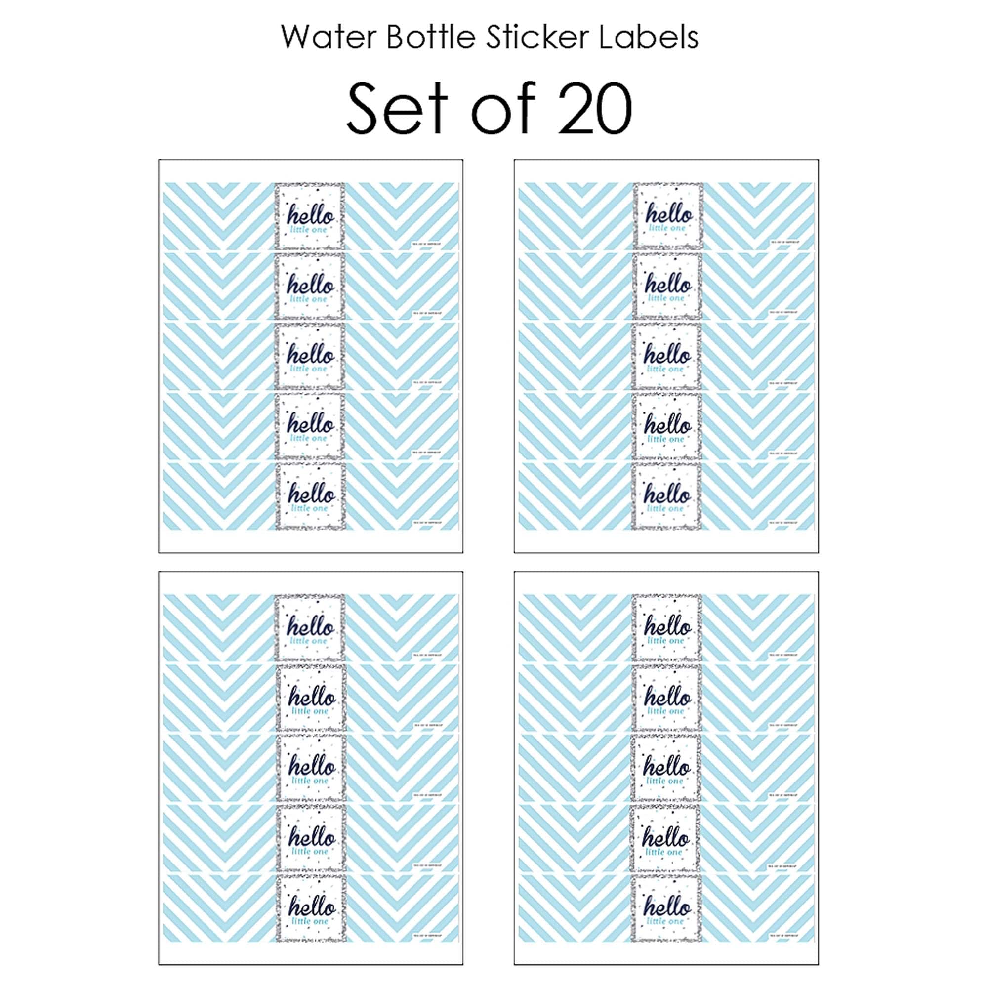 Hello Little One - Blue and Silver - Mini Wine Bottle Labels, Wine Bottle Labels and Water Bottle Labels - Boy Baby Shower Decorations - Beverage Bar ...